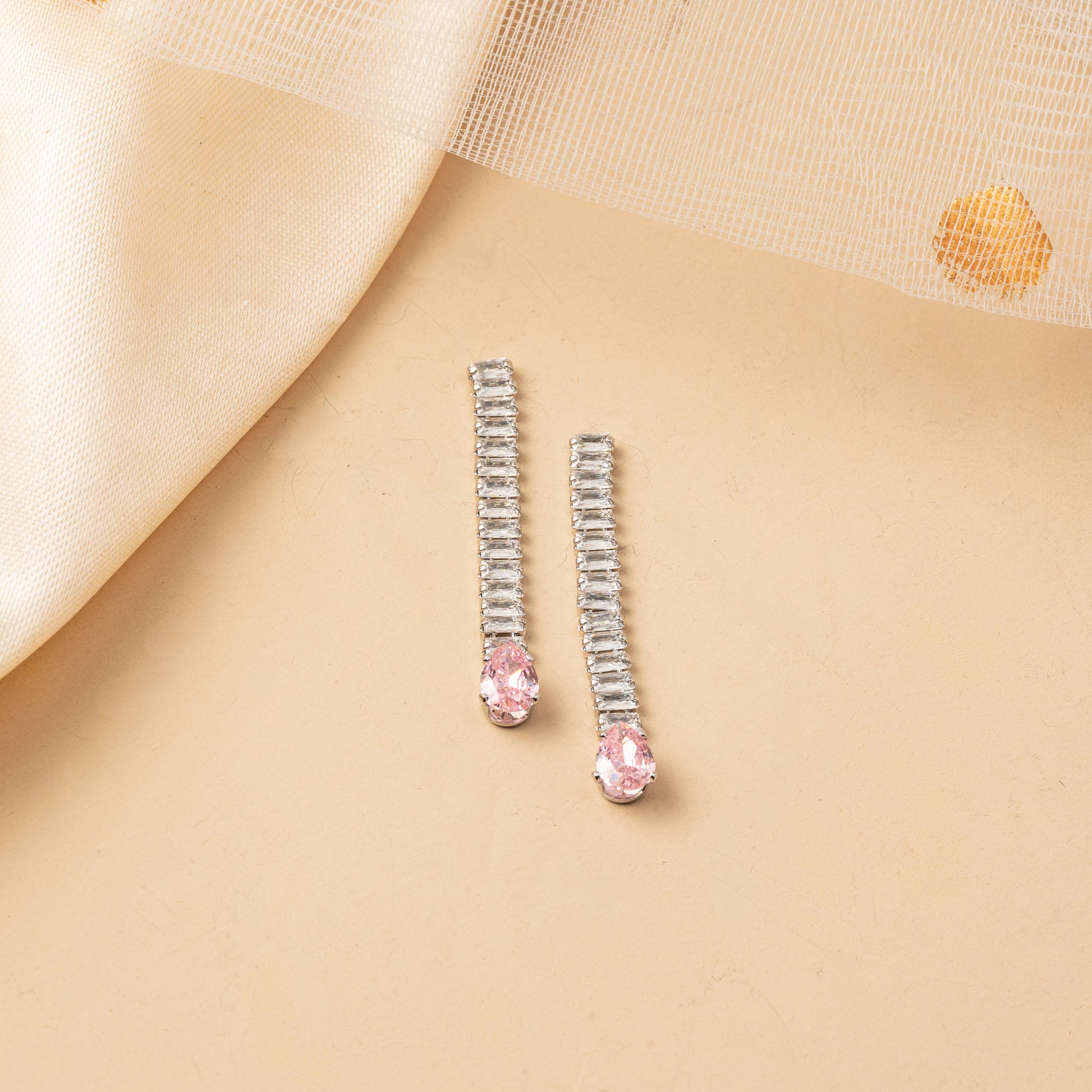 A refined necklace design defined by a continuous, slender line of precisely aligned elements, subtly accented with softly contoured focal drops that add gentle variation and balance. The clean geometry creates a polished, modern flow along the neckline, while the understated drops introduce a touch of elegance without excess. Paired with matching linear earrings, this set feels minimal yet expressive-crafted for effortless sophistication and quiet allure.